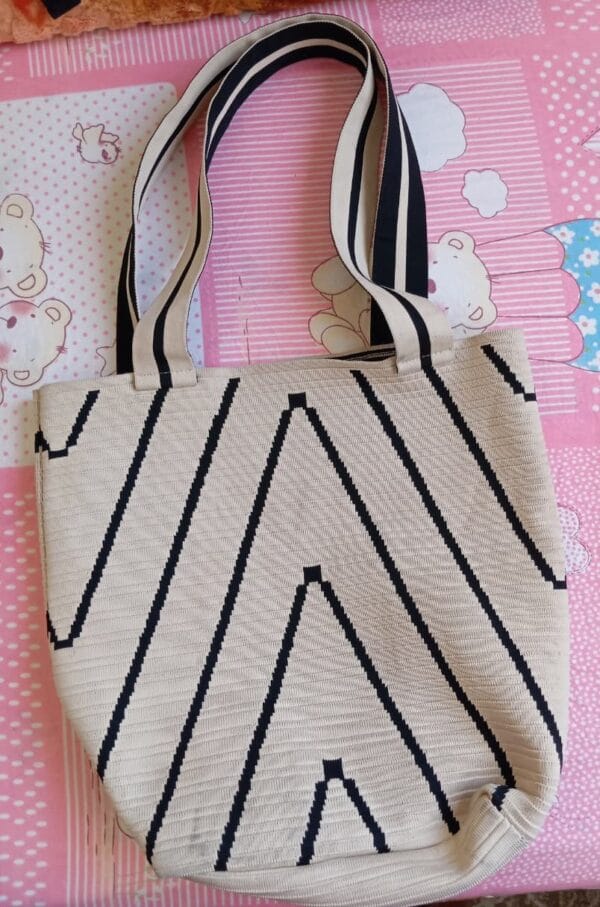Beige Chevron Knit Tote
