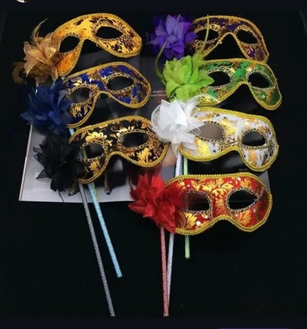 Gold Floral Venetian Masquerade Mask on Stick
