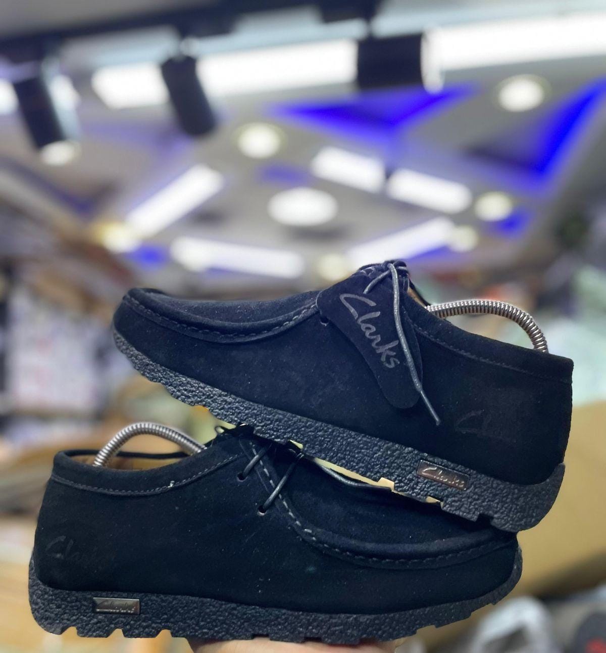 Midnight Black Suede Clarks Wallabees