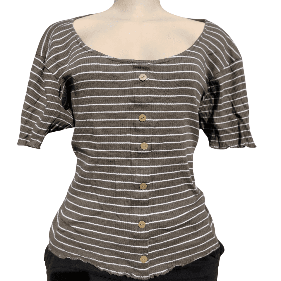 Olive and White Striped Button-Front Tee (Size XL)