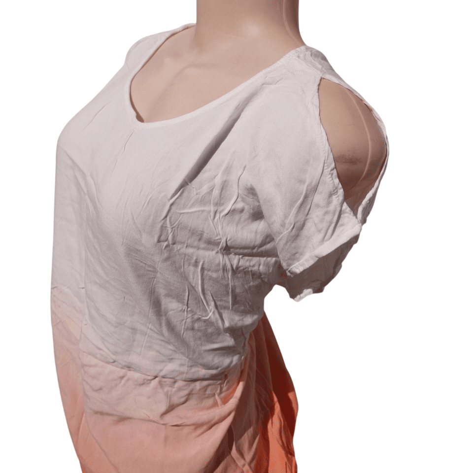 White and Peach Ombre Cap Sleeve Blouse (Size L)
