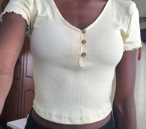 Yellow Ribbed Henley Crop Top (Size M)